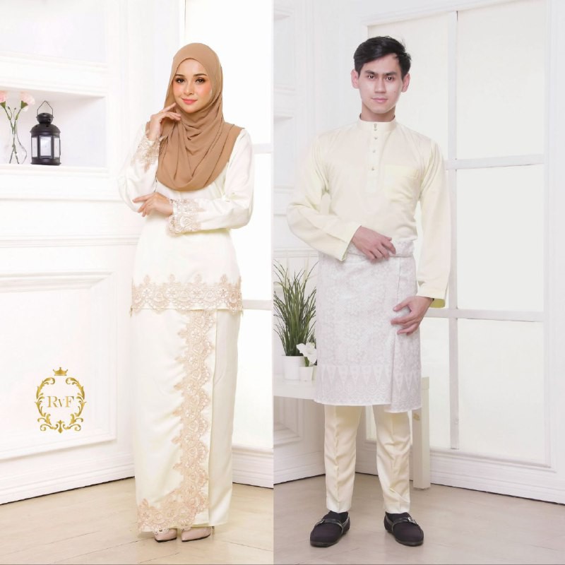 Baju Kurung Moden Nikah Sanding Putih Offwhite Couple Set Sedondon Mawar Shopee Malaysia